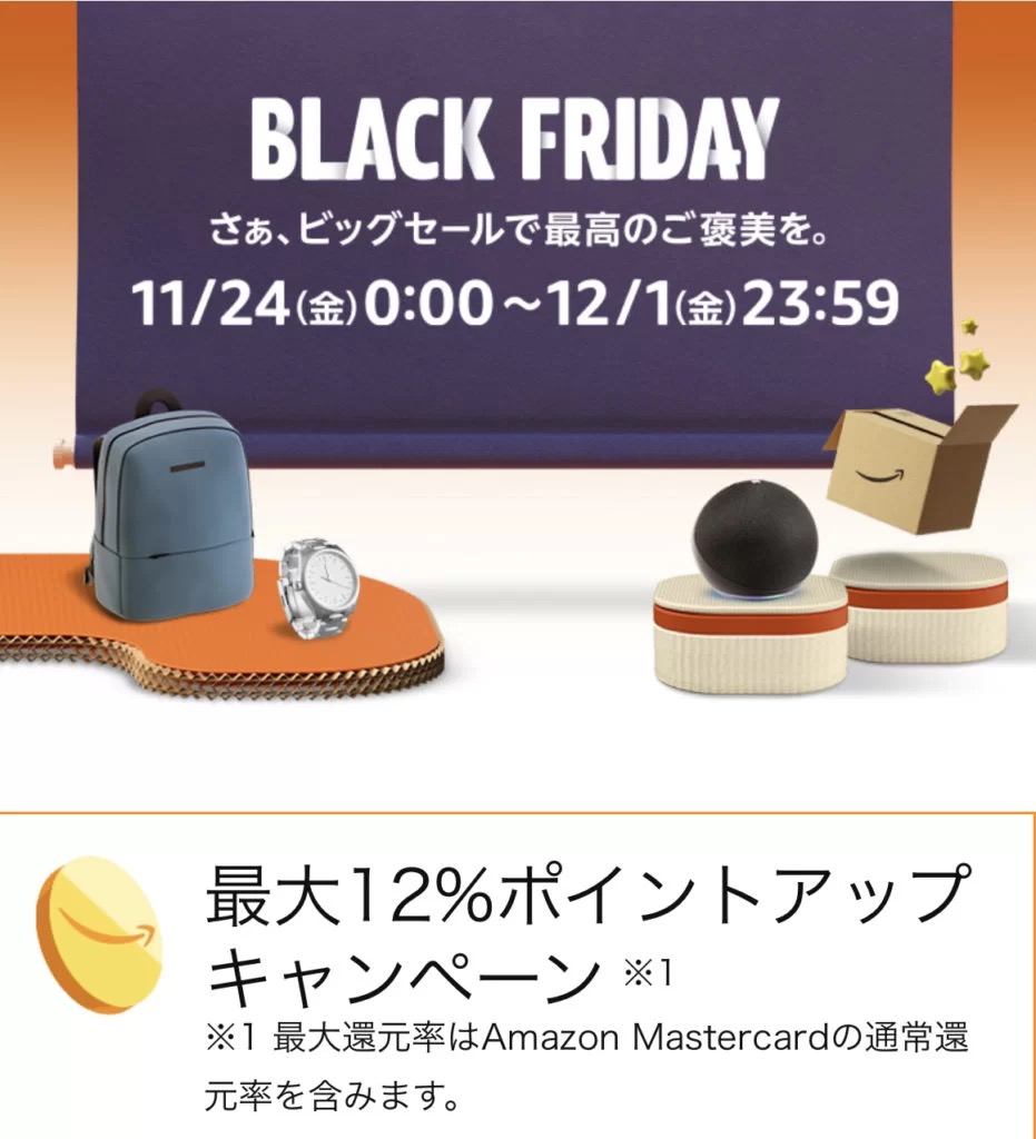 ブラックフライデー期間中にAmazonで買い物前に必ずやっておきたいのが「ポイントアップキャンペーン」です。