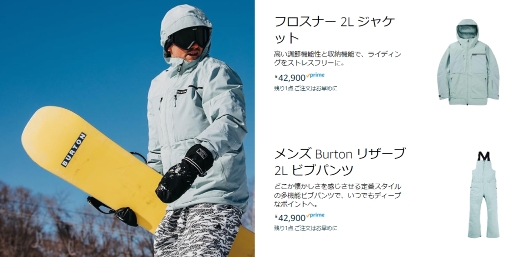 ギアやウェア、ファッションアイテムを狙っているなら、Burton のアイテムを手に入れるために Amazon の公式ストアをぜひ活用しましょう。