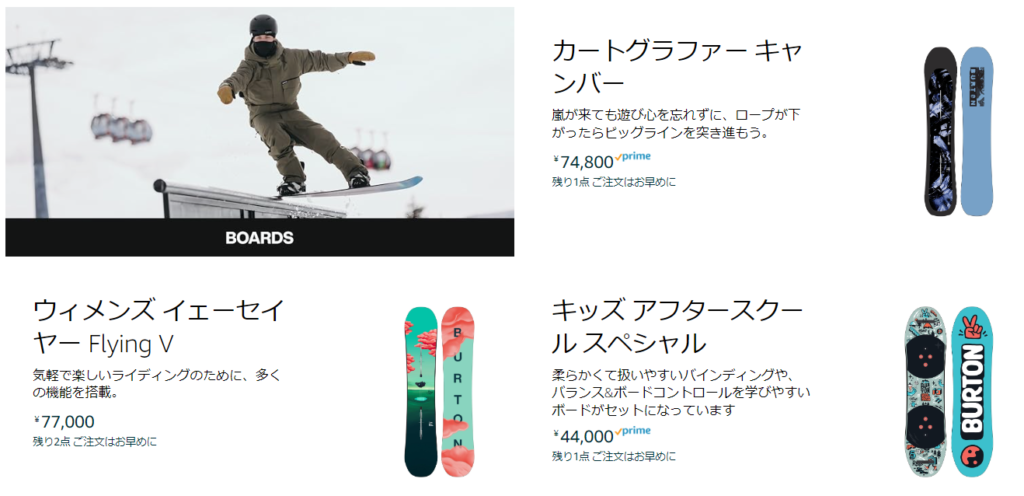 BURTONのブラックフライデーは、Amazonの公式ストアでチェックできますよ!