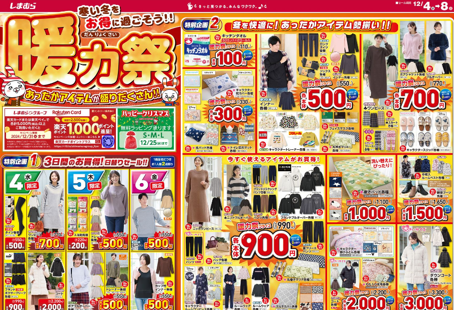 しまむらの初売りセールでは、ファッションアイテムから生活雑貨まで幅広い商品が特価で販売されます。